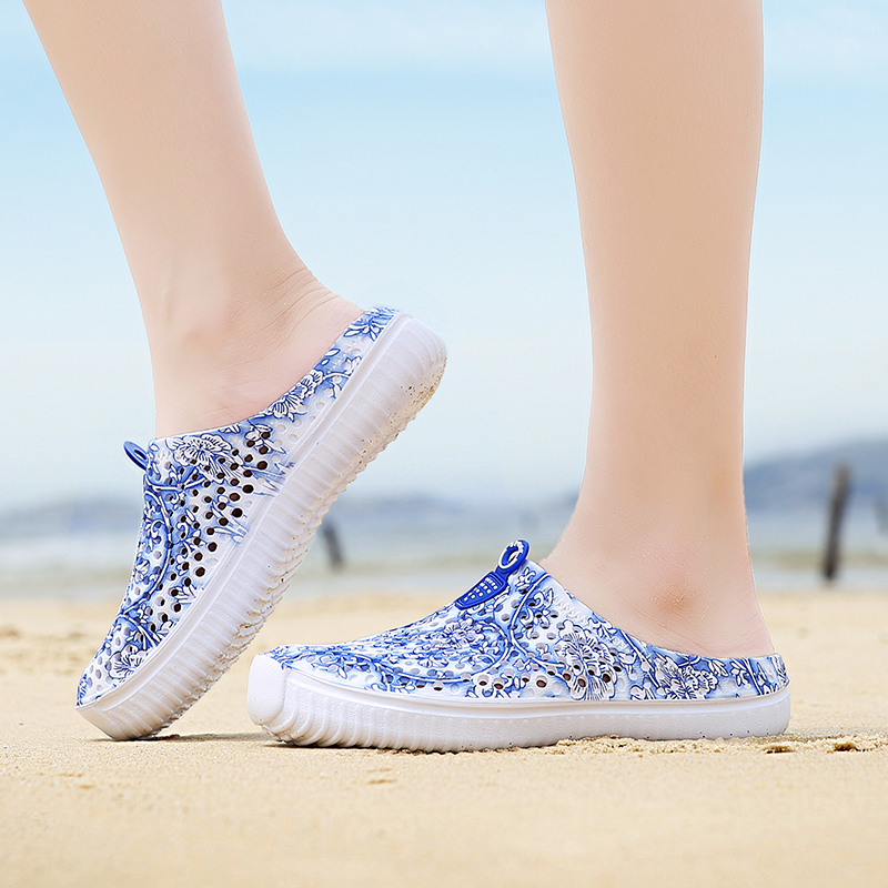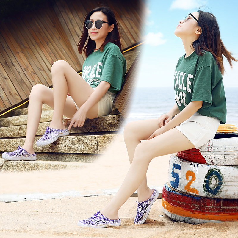 Woman slippers anti-slippers half slippers bag beach shoes beach shoes lady beach sandal drag to the holiday outdoor sandals shoes hole shoes