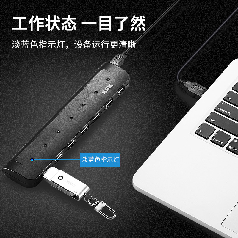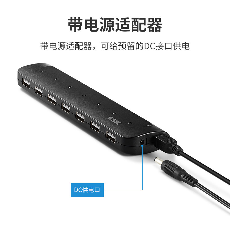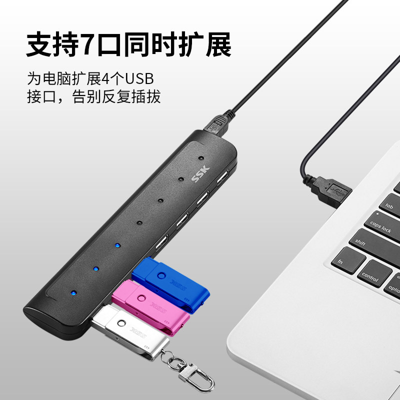 SSK Biaowang high-speed 7-port USBHUB one drag seven-port USB2 0 extension cord can be powered hub with adapter