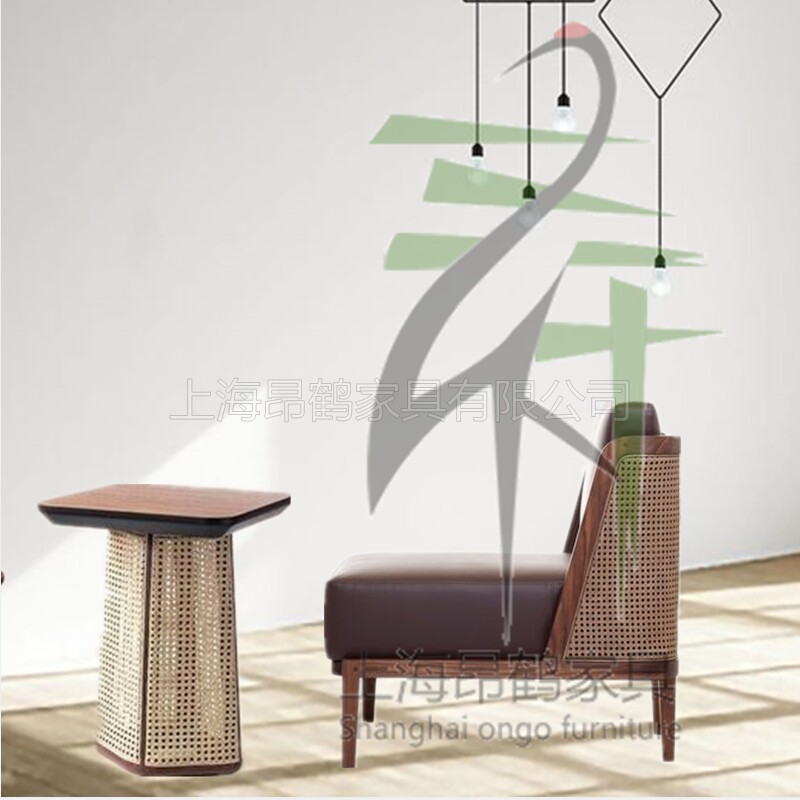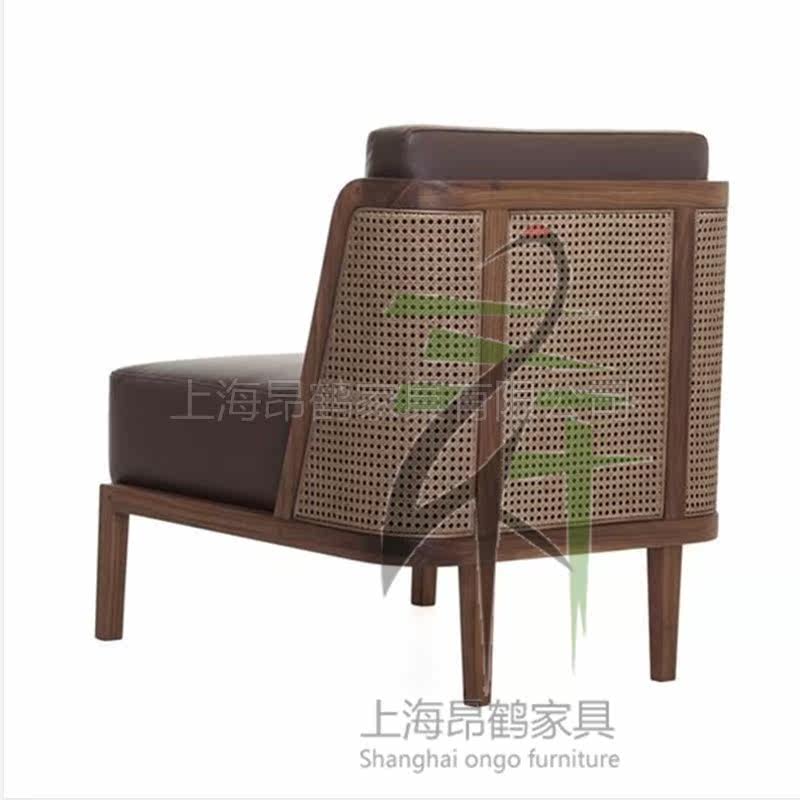 Neoclassical rattan sofa solid wood rattan sofa combination modern minimalist living room single and double sofa model room