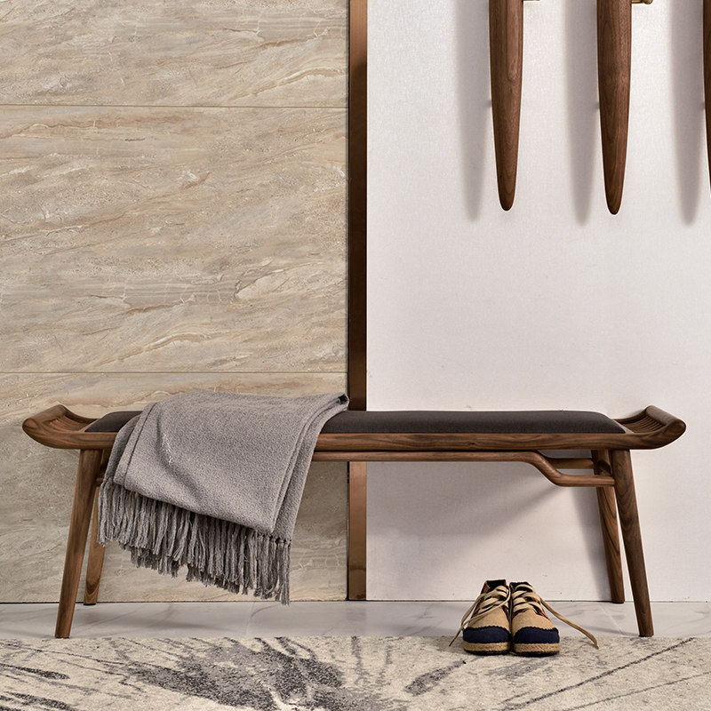 Modern New Chinese Black Walnut Bedstool Household with long bench pure wooden bedroom furniture changed shoe stool