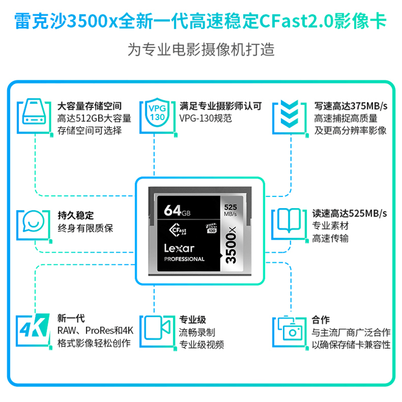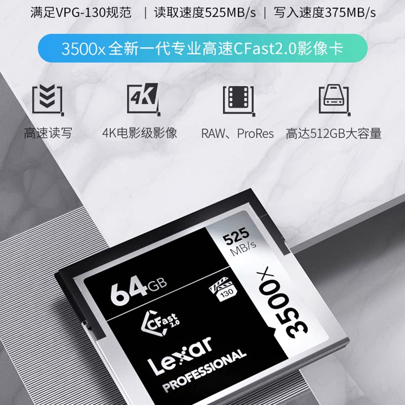 Lexar Lexar CFast2 0 card 64G 3500X high-speed monocular Canon 1DX 1DX2 1DXII memory card memory card camera card 52