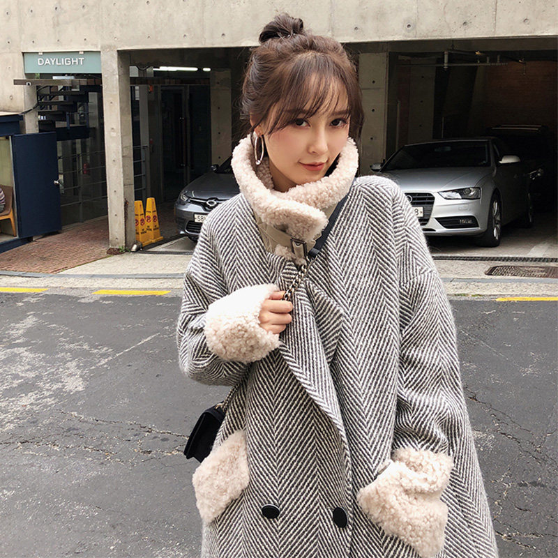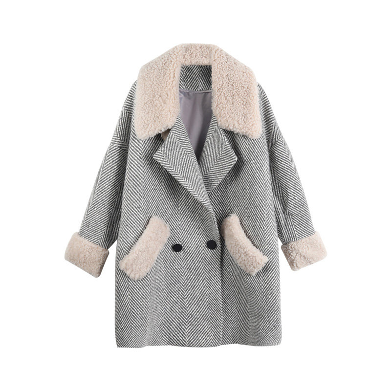 Hong Kong pop brand 2020 winter new double-breasted lamb wool coat small wool wool thickened women's coat