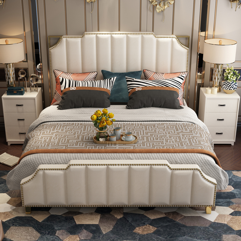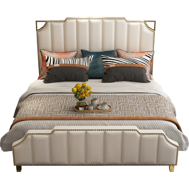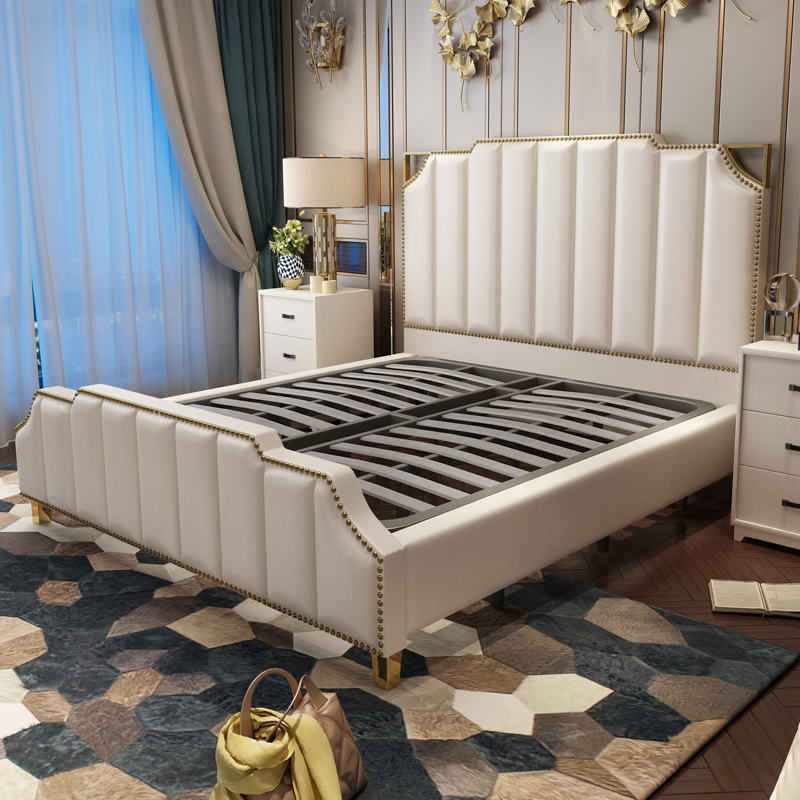 Postmodern leather 1 8 master bedroom atmospheric wedding bed 2 meters 2 2 European soft bed net red ins light luxury double bed furniture