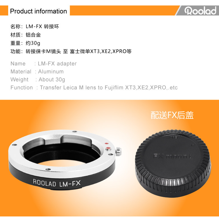 LM-FX adapter ring Leica M-mount lens to Fuji Micro single X-mount XT3XE2XA10Xpro and other bodies