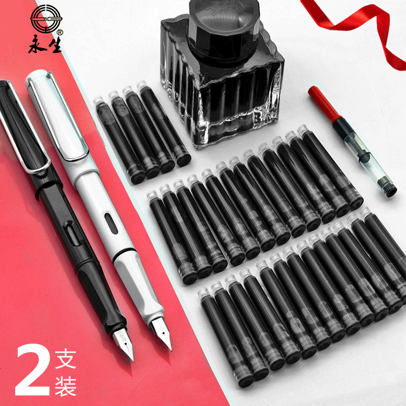Yongsheng 100 Fountain Pen Ink Sacks Special Ink Guts Erasable Pure Blue Black Ink Elementary Students With 3 4mm Universal Substitutable Adult Male Girl Beginners Cartoon Children are practicing the lettering words