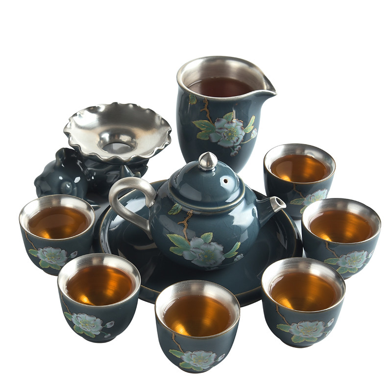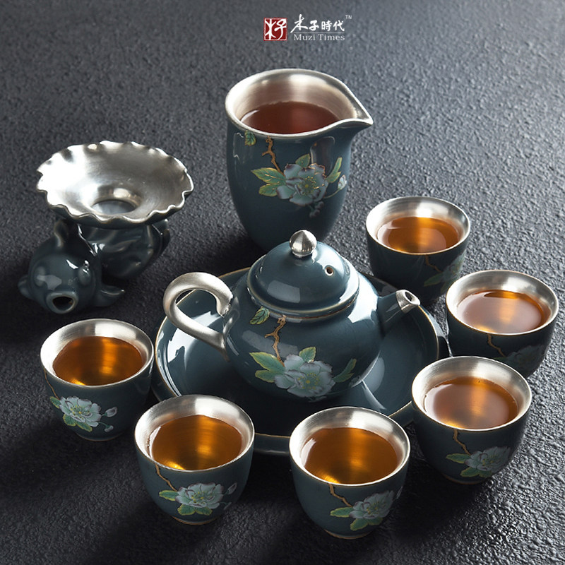 Gokiln Cover Bowl Ceramic Teapot 999 Pure Silver Kung Fu Tea Furniture Set Group Home Fair Cup Ceramic Tea Cup Sub Gift Box