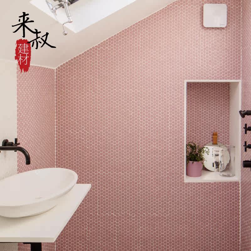 Uncle Lai Nordic pink mosaic Jiugongge tile kitchen wall tiles powder room hexagonal floor tiles background wall tiles