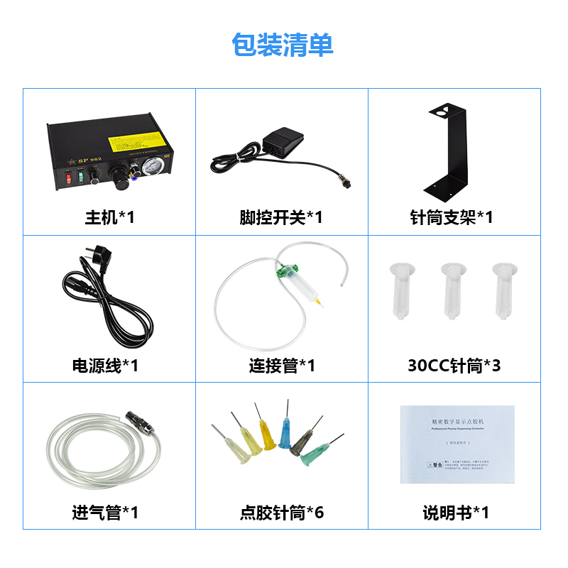 Semi-automatic syringe barrel dispensing machine Semi-automatic silicone dispensing machine Semi-automatic AB dispensing dispenser three-axis dispenser control system Four-axis rotary dispenser control system Double Y dispenser control system Five-axis dispenser control system Peristaltic semi-automatic dispenser - standard peristaltic semi-automatic dispenser - digital display Hot melt adhesive semi-automatic dispenser (with bracket) Hot melt dispenser semi-automatic dispenser (without bracket) Hot melt dispenser low temperature dispensing head Hot melt dispensing machine high temperature dispensing head Hot melt dispensing machine temperature control system Dispenser suction dispensing valve Dispenser high frequency spray valve 2.6 liter silicone drum 1 barrel carbon steel pressure drum stainless steel pressure drum AB glue vortex refrigeration pipe two-component air gun (proportional contact customer service to confirm) silicone sleeve semi-automatic dispenser B800 silicone valve