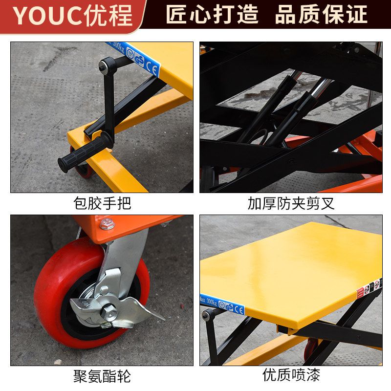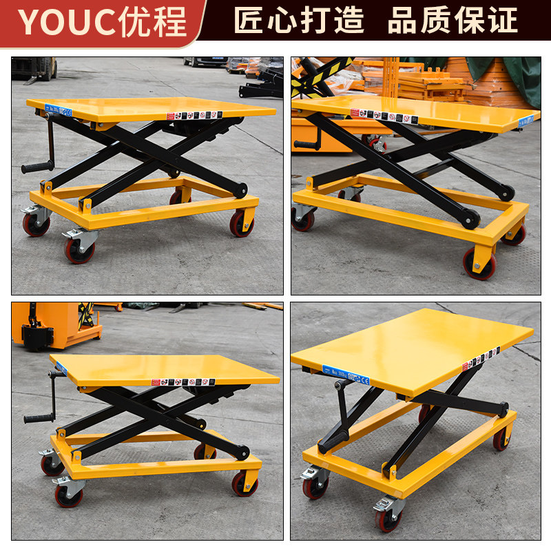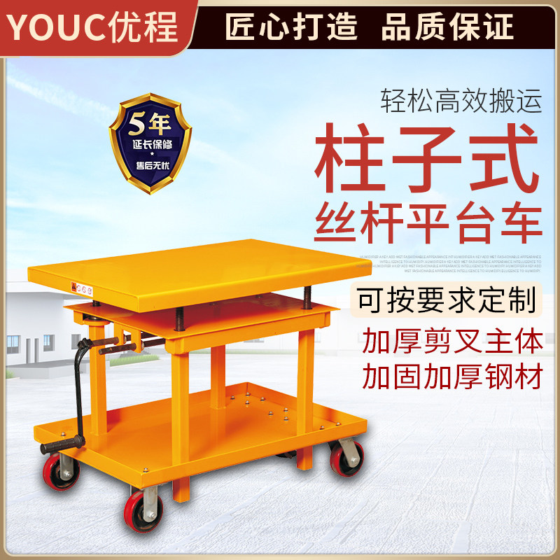 Youcheng screw car, screw manual platform car, hand-cranked lifting platform car, gentle hydraulic lift car