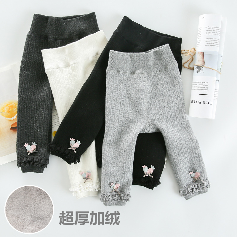 18 winter children's crotch double needle one-piece pants Baby children baby pantyhose super thick velvet inner pants
