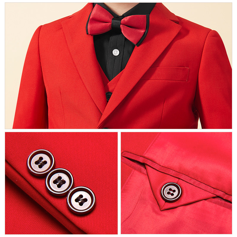 Red 5-piece set = top pants vest shirt bow tie red 5-piece set = top pants vest black shirt bow tie red 3-piece set = top pants vest Red