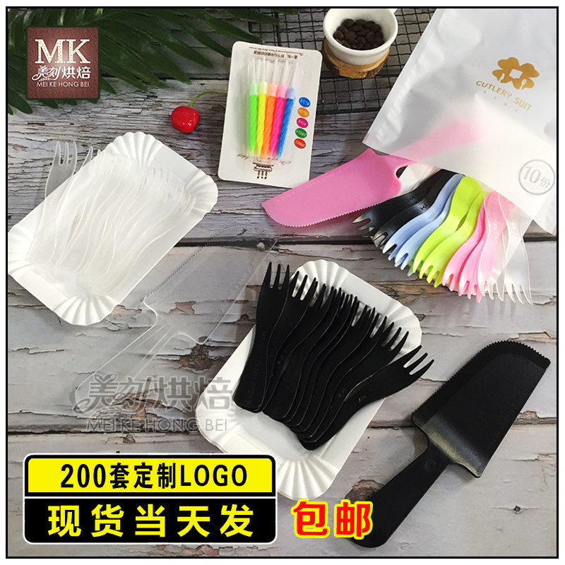 Cake Knife Fork Set Disposable Cake Cutlery Fork Tray Birthday Cake Knife Fork Tray Coated Paper Tray Knife Fork Plastic