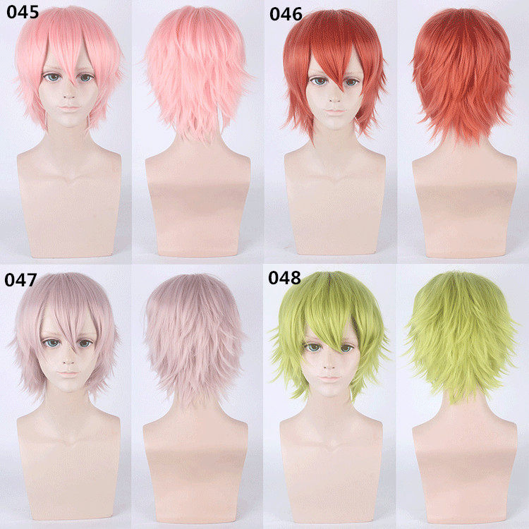 Silver white flax gray light green white red black blue cos multi-use back warped short hair teenager colorful short false hair