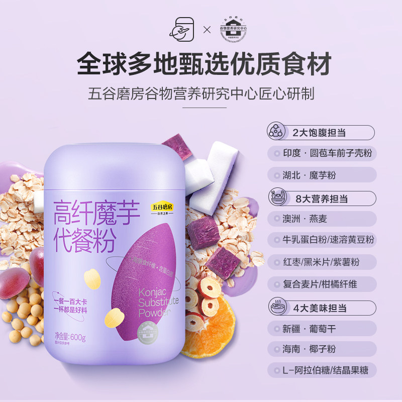 Five grain mill konjac meal replacement powder purple potato meal replacement porridge lazy full stomach food high fiber konjac powder coconut powder
