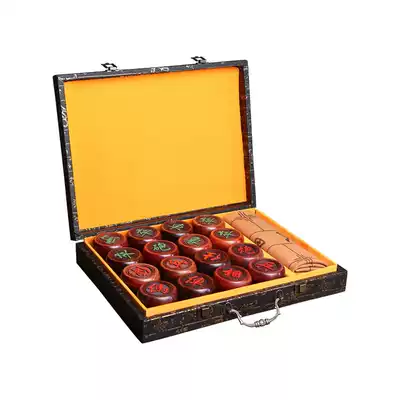 Zambia blood sandalwood 6 8CM large Chinese chess Yin carved Yang folding leather chess paper solid wood chess set