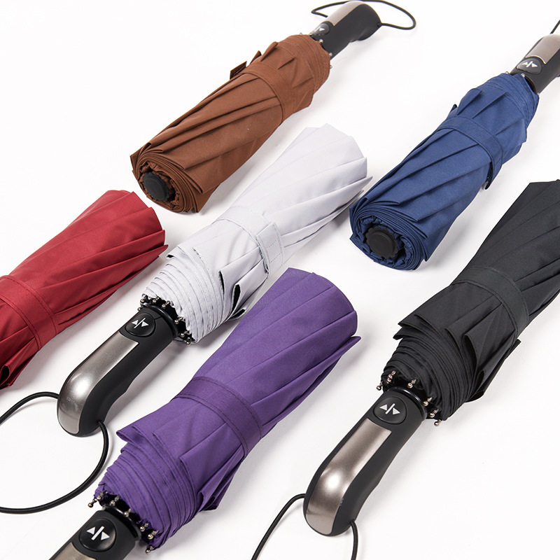 Fully automatic umbrella ten bone business folding and folding opening big number windproof reinforced triple fold sunny and rain dual-use advertising umbrella custom