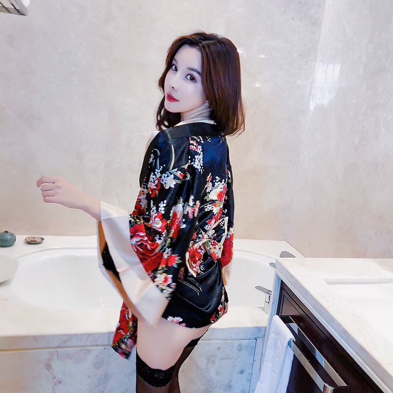 Sexy lingerie female passion suit kimono style three-point Japanese pajamas uniform stockings temptation blood drop