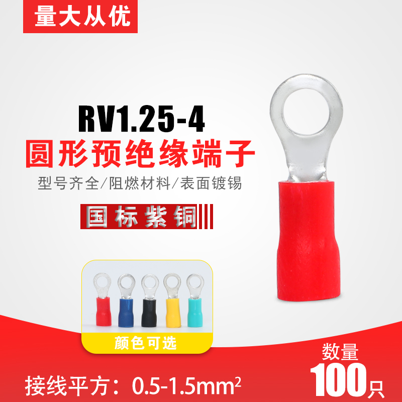 RV1 RV1 25-4S red copper O round pre-insulated cold pressure wiring terminal copper wiring terminal copper wire ear connector RV1-4S