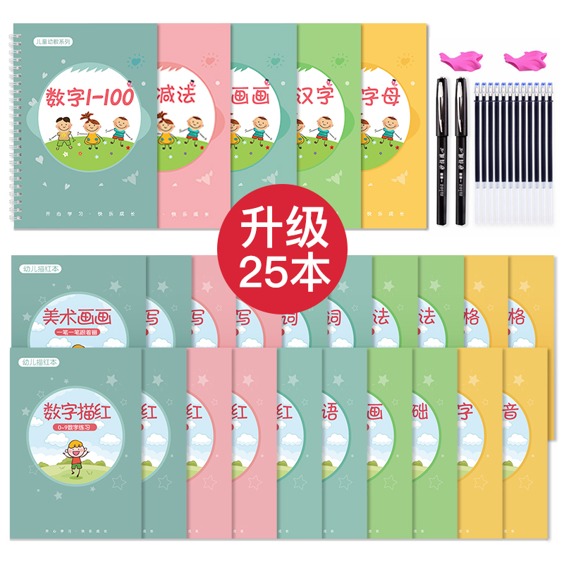 Children's copybook preschool kindergarten enlightenment pre-school 3-6 years old 1 Beginner groove practice post writing regular script Primary school students digital practice tracing red Practice this post Baby learn to write in the class entry beginner artifact pen