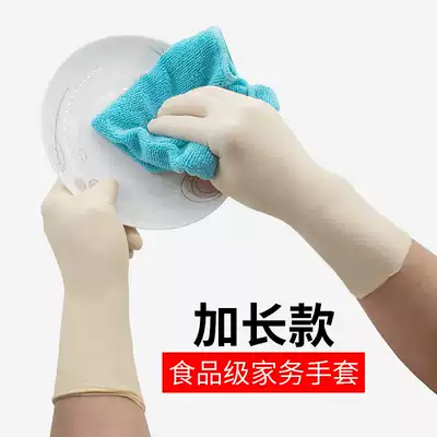 Latex gloves women's thin dishwashing durable long version of rubber laundry kitchen extended beef tendon waterproof housework brush bowl