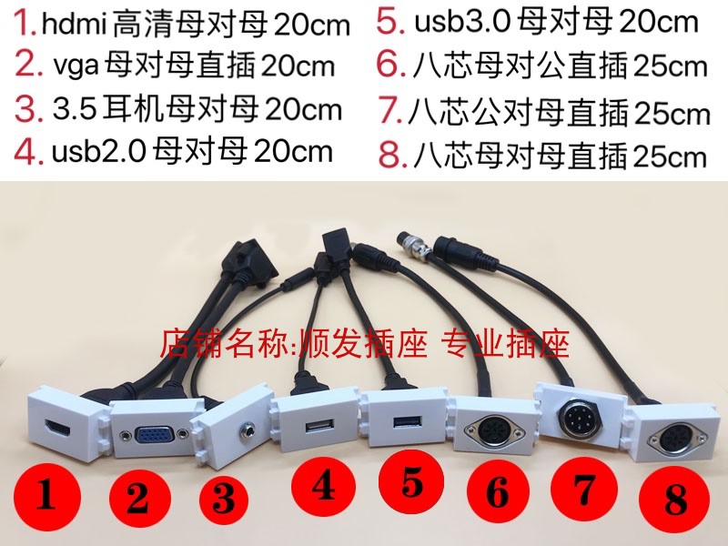 86-type single 8-core hand-in-hand conference microphone panel socket eight-core wall plug with line female-to-male extension line straight plug