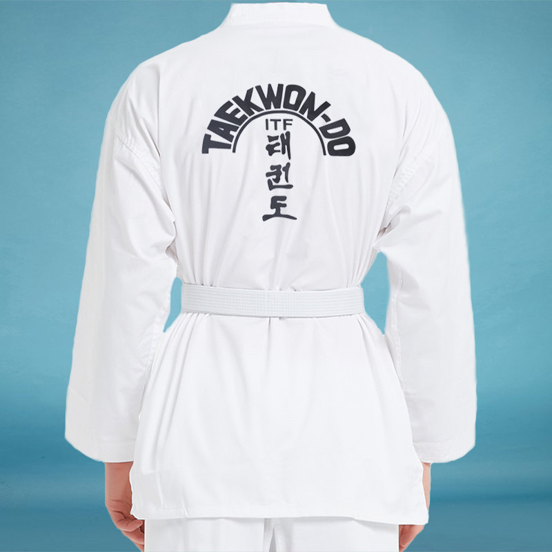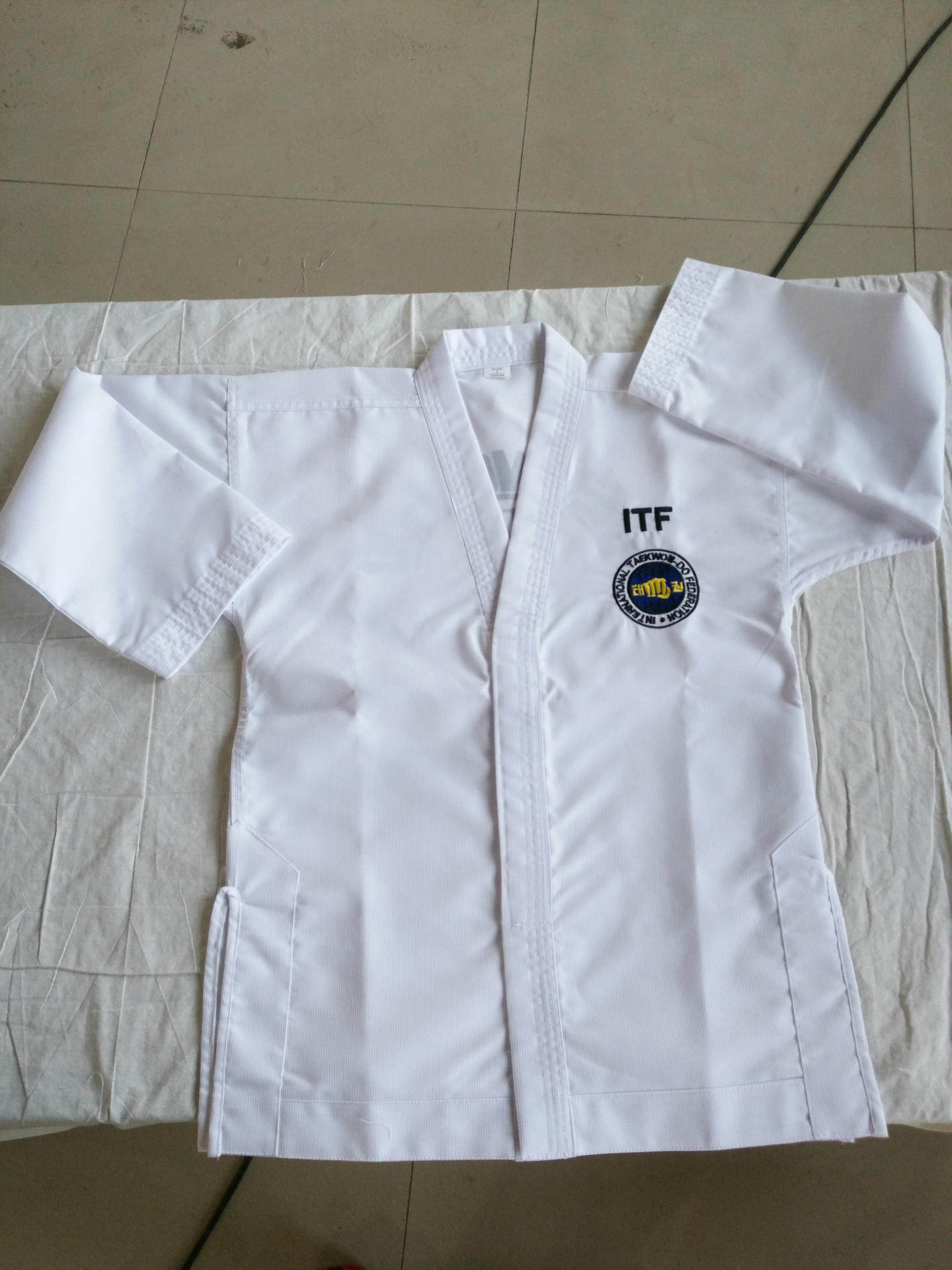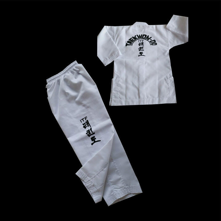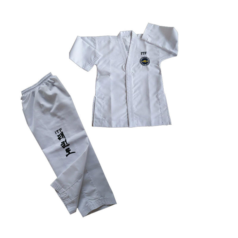 ITF road suit Taekwondo children adult men and women beginner martial arts training suit Pure white adhesive Taekwondo Alliance
