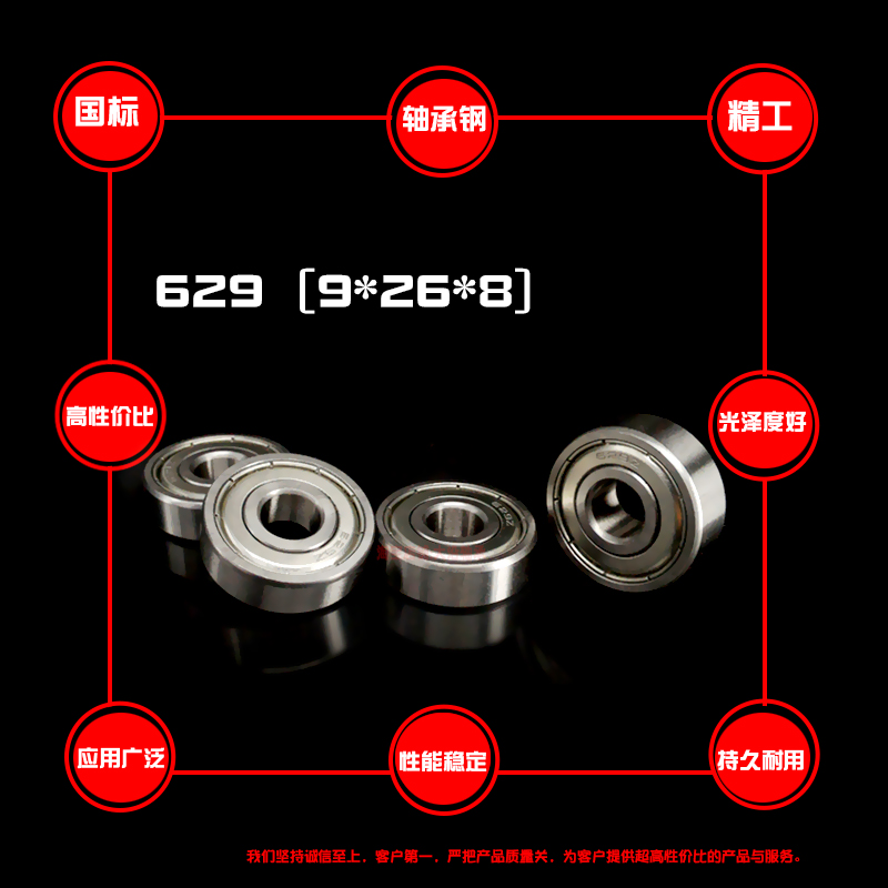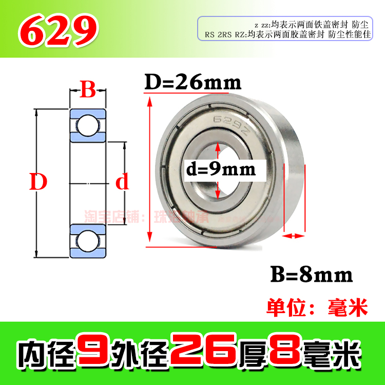Quality deep groove ball miniature small bearing 629z zz 629RS inner diameter 9mm outer diameter 26 thickness 8mm shaft bearing steel