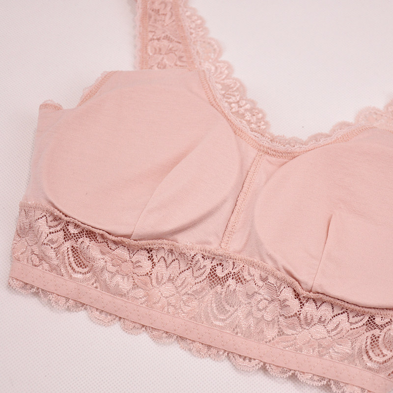 No buckle bra No steel ring Thin Lace No steel ring Sleep Bra Shoulder Strap With Chest Cushion Vest Style Large Size Underwear Woman