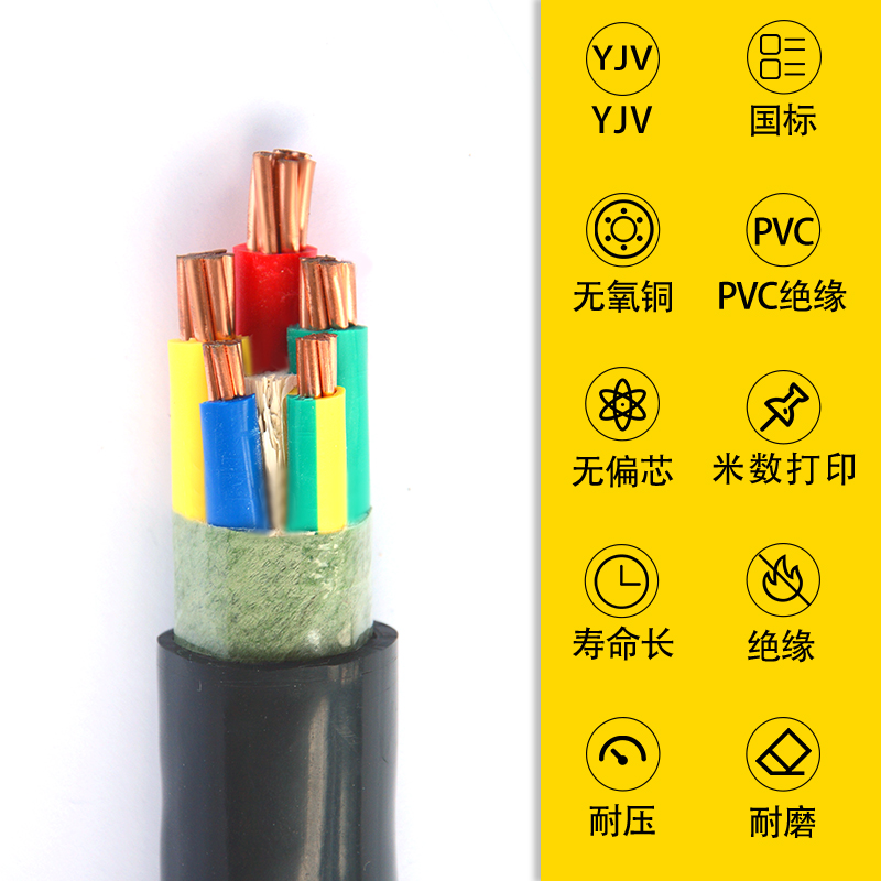 Low smoke halogen-free copper core cable WDZ YJV2 3 4 5 cores 1 5 2 5 4 6 10 squared outdoor wire