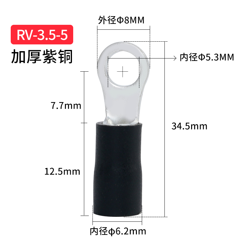 RV3 5-5 red copper O type round pre-insulated cold pressure wiring terminal copper wiring terminal copper wire ear connector RV4-5