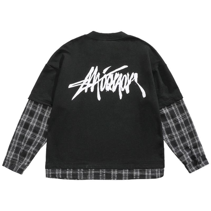 Spring holidays Two long sleeves Splicing Thick T-Shirt Male Tide Card Day Department Loose Hip Hop Original Juku Wind Round Collar No Hat Jacket