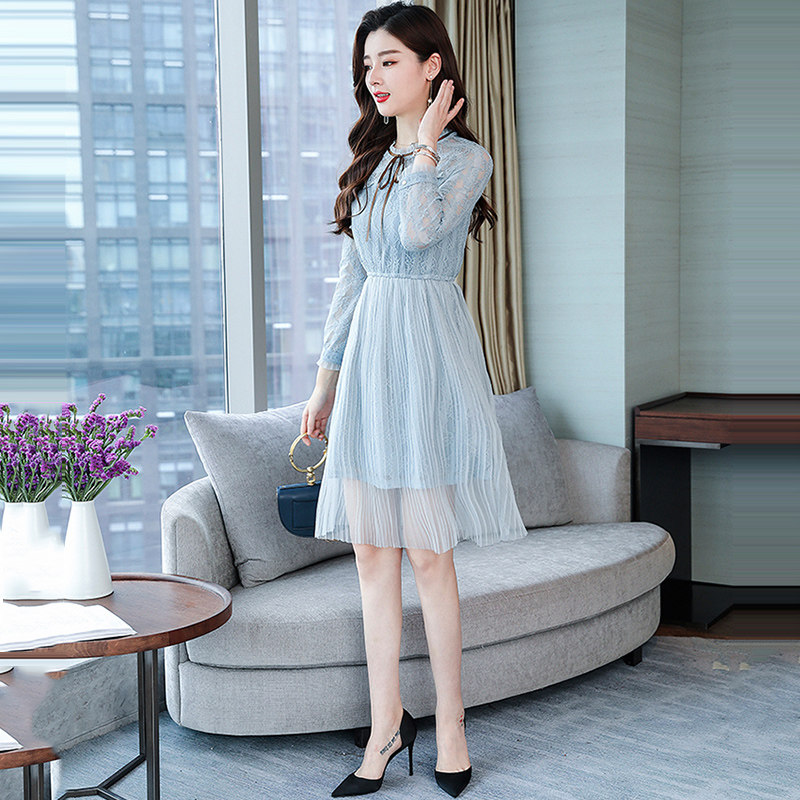 2022 New early spring and autumn high-end big cards light extravagant and luxurious and elegant with small short and long sleeves lace dress women