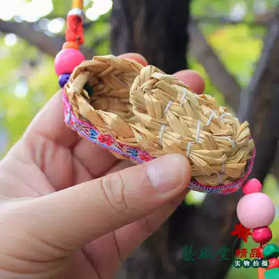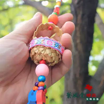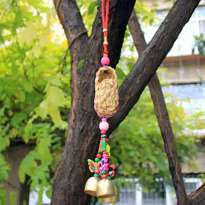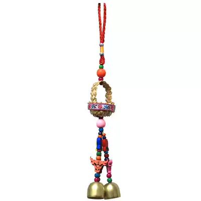 Hand-woven grass basket Wind Bell copper bell car pendant pastoral decoration hanging grass flower basket only push doorbell