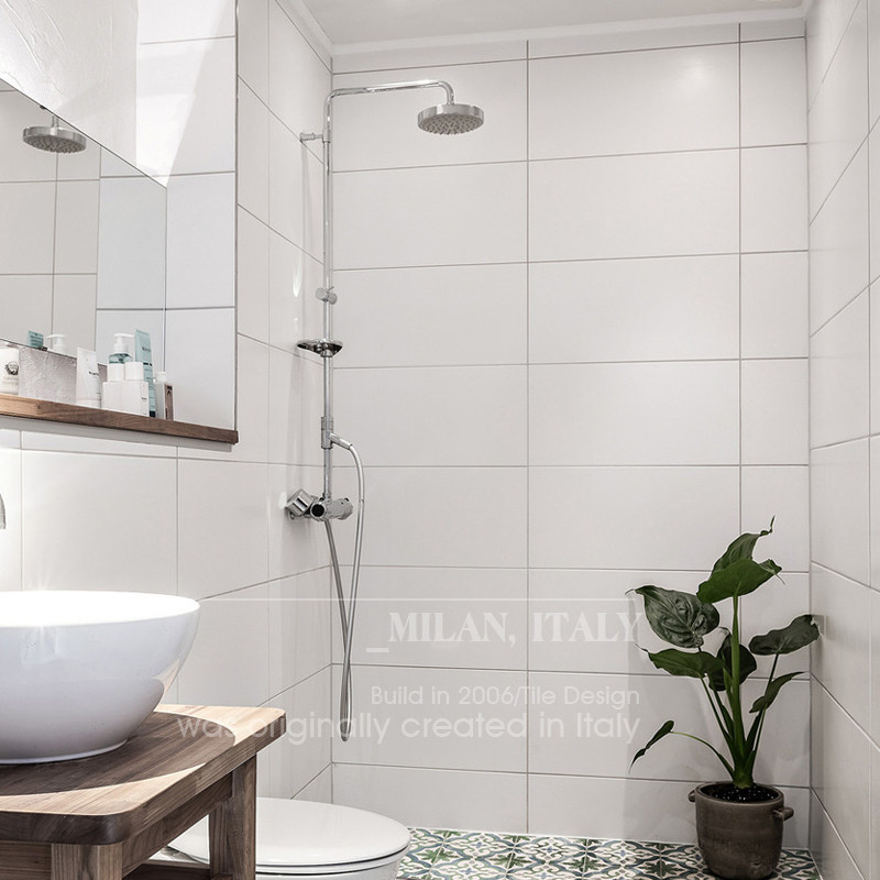 Modern minimalist toilet tiles matt pure white full ceramic kitchen bright light white wall brick 300x600 black and white grey-Taobao