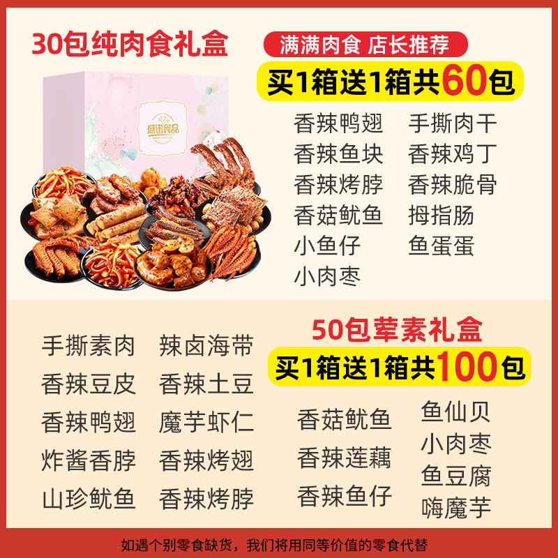 (Buy 1 box to get 1 box)Two boxes of vegetarian snacks a total of 100 packs (Spicy Research Institute) (Buy 1 box to get 1 box)Two boxes of vegetarian snacks a total of 100 packs(single gift box) (Buy 1 box to get 1 box