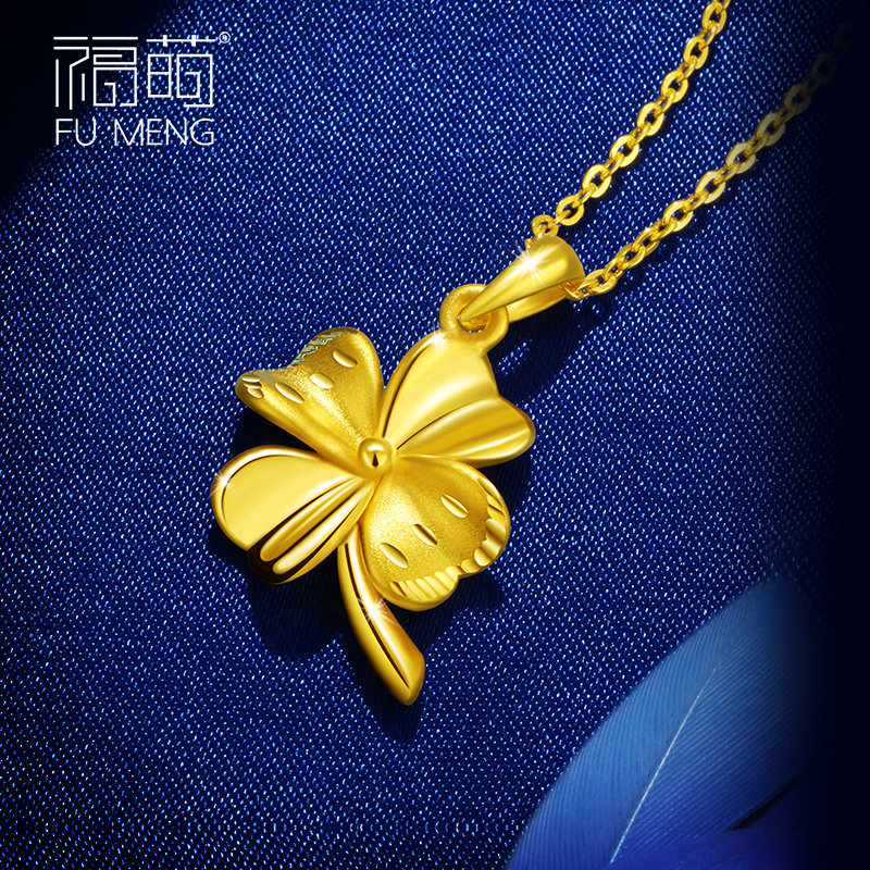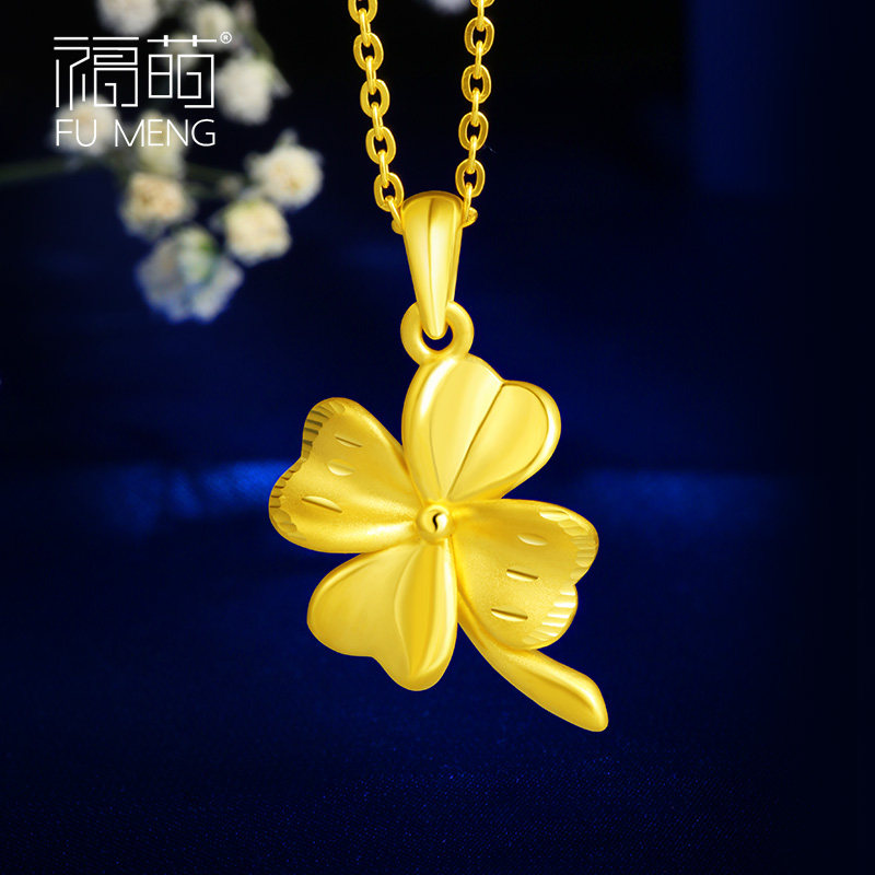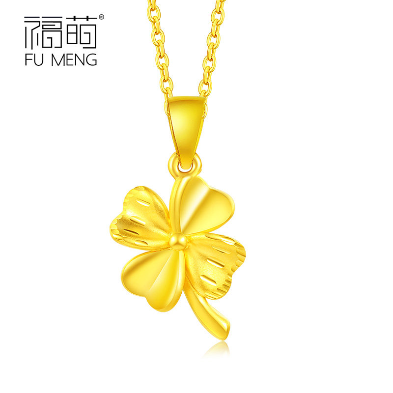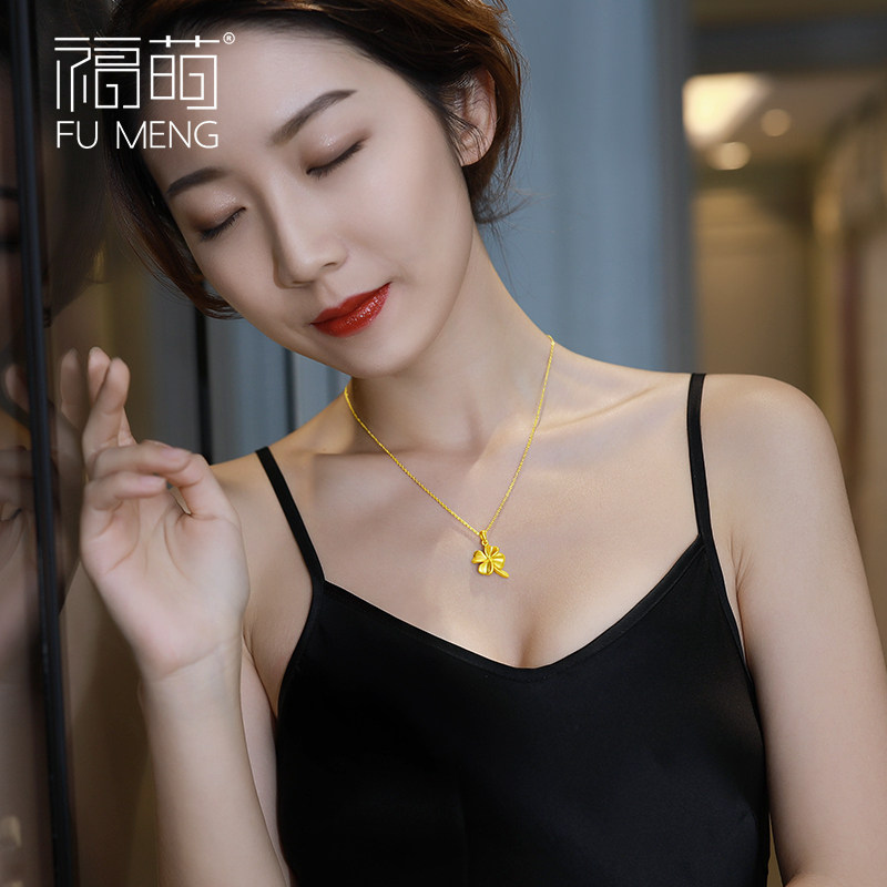 Fu Meng four-leaf clover gold pendant ladies 999 gold clavicle necklace pendant birthday gift to wife
