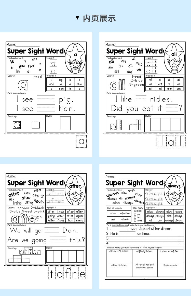 220 High frequency word exercise book 221 high frequency word cards (with iron box poster)