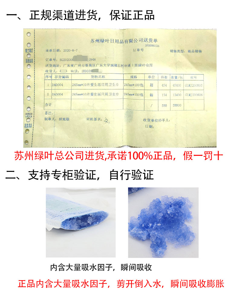 Green Leaf love life pad Negative ion nano sanitary napkin 6 packs Soft cotton dry 30 pieces pack 155mm