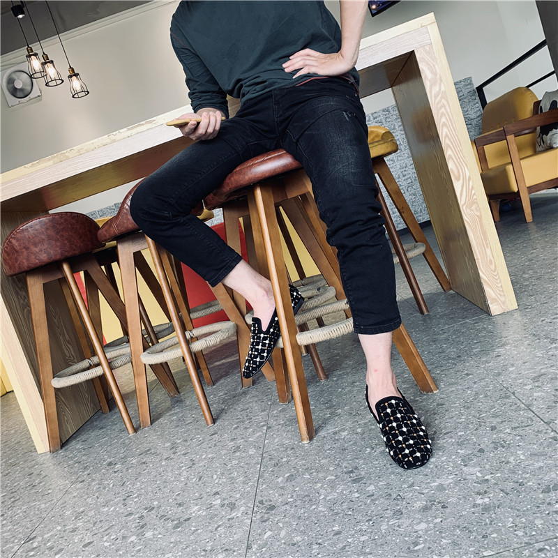 Internet celebrity men's shoes 2022 new Korean version of leather rhinestone peas shoes men's all-match personality slip-on loafers trendy