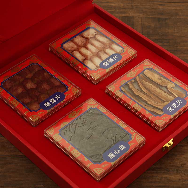 Jilin sika deer antler pieces Changbai mountain four treasures gift box deer whip deer antler pieces ganoderma slices gift box express non-stop