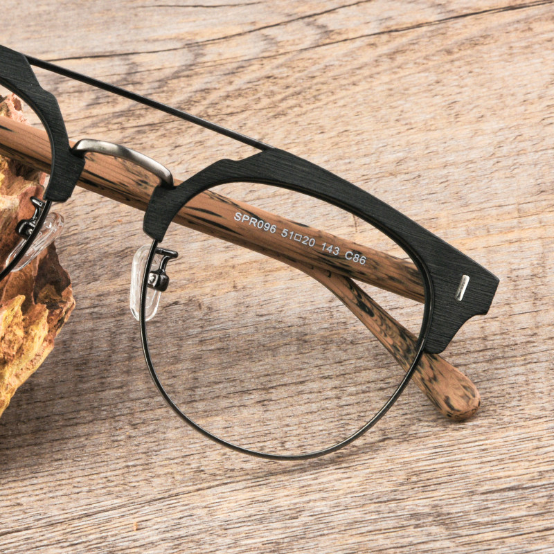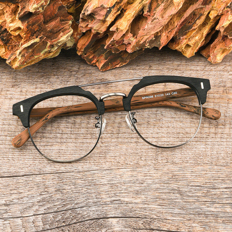 Sweep Black Storm Sun Red Thunder the same wood large frame Retro double beam can be matched with myopia large face plate frame male