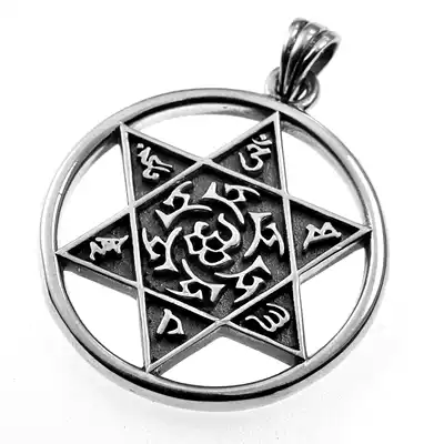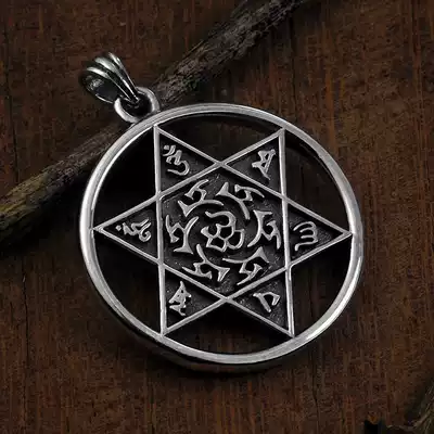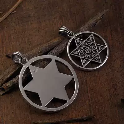 925 sterling silver six-character truth six-pointed star pendant men and women retro couple simple Star of David Thai silver pendant