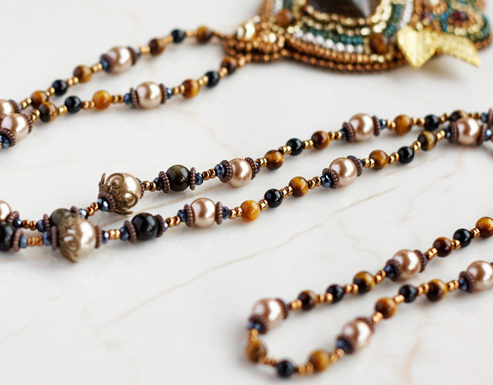 European retro sweater chain bead embroidery French embroidery Shijia pearl tiger eye stone diy material bag sold out