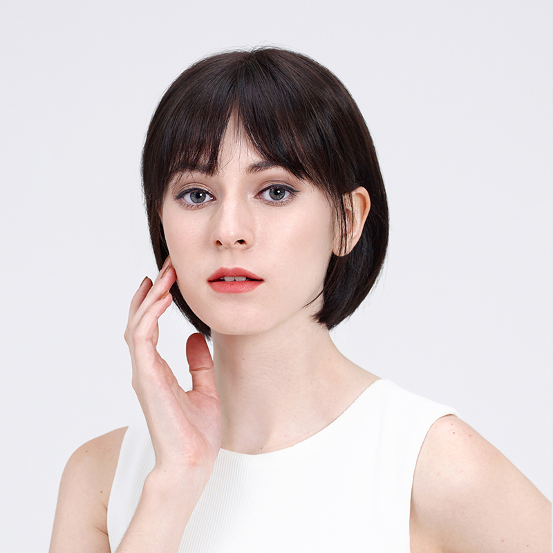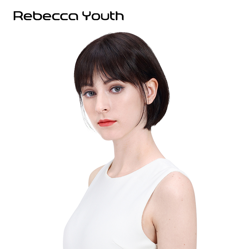 Rebecca wig woman short straight hair Qi oblique bangs bobo head full real hair hand knit Song Hui Qiao the same hood