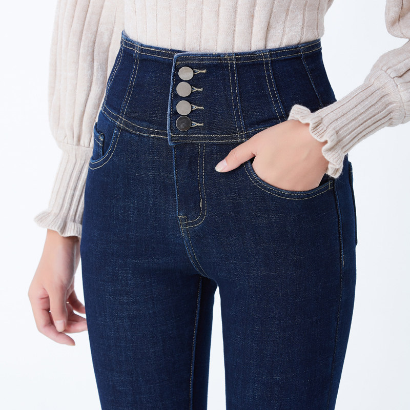 The new Han Edition in 2023 tight winter wear small feet high waist warm one trousers