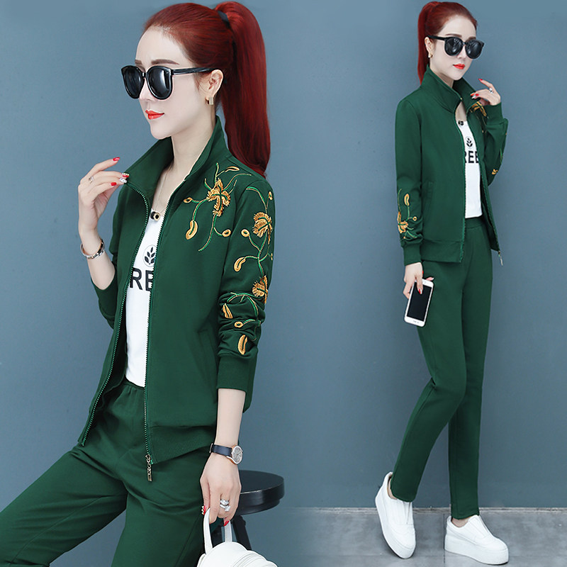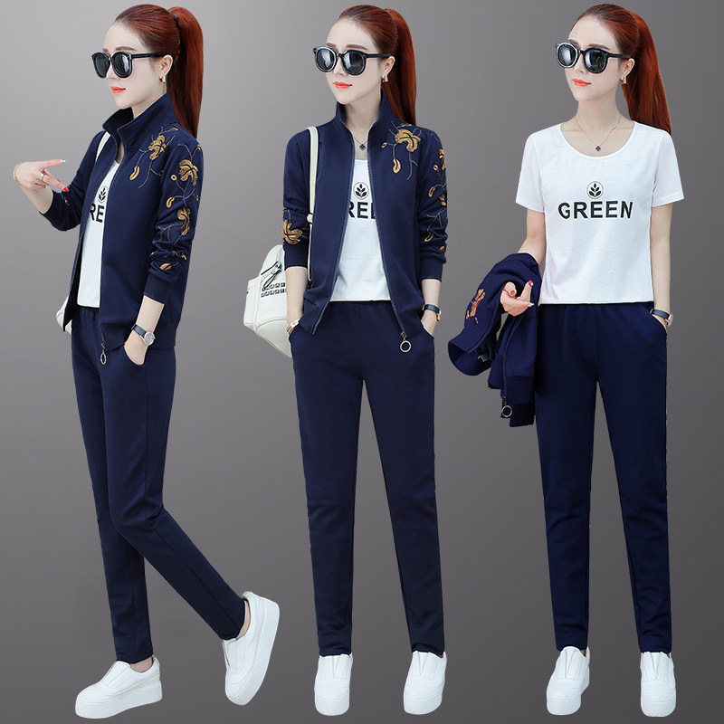 Leisure sports suit women Spring and Autumn 2020 new two pieces fashion loose Korean thick cotton T sportswear three sets tide