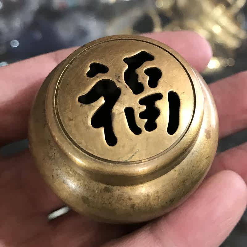 Antique pure copper small incense burner antique household Buddha brass aromatherapy furnace tea ceremony room incense burner Fulu Shouxi