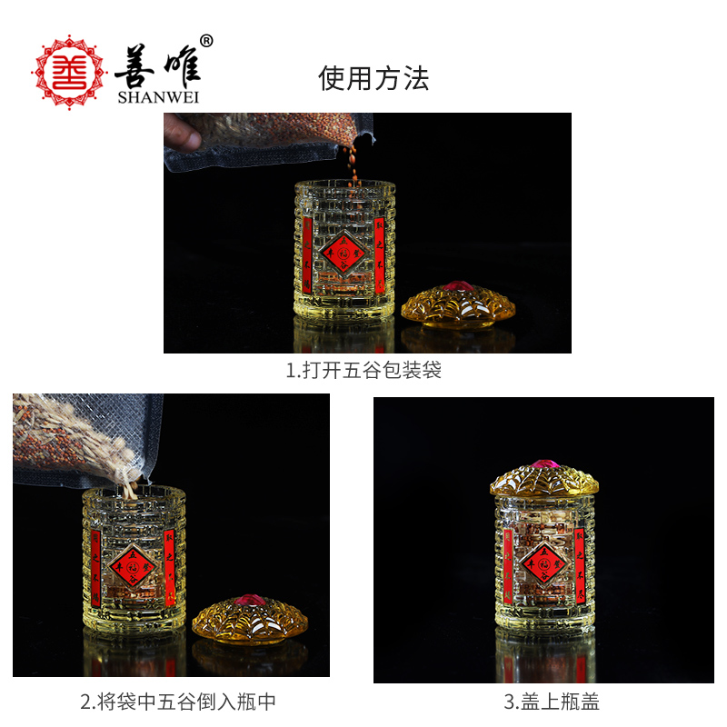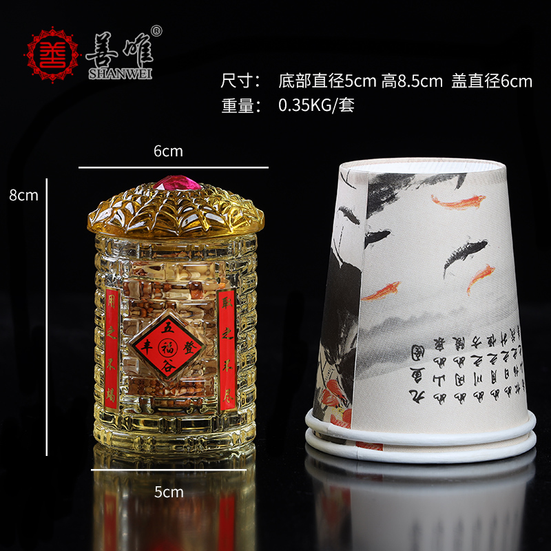 With the burial goods Crystal granary boxes containing five grain cereals, five colorful grain clothes, no worries down to burial and funeral supplies