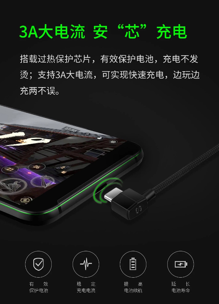 3A Fast Charge Black Shark Type-C Right Angle for Original Data Cable Black Shark 4 3 2Pro