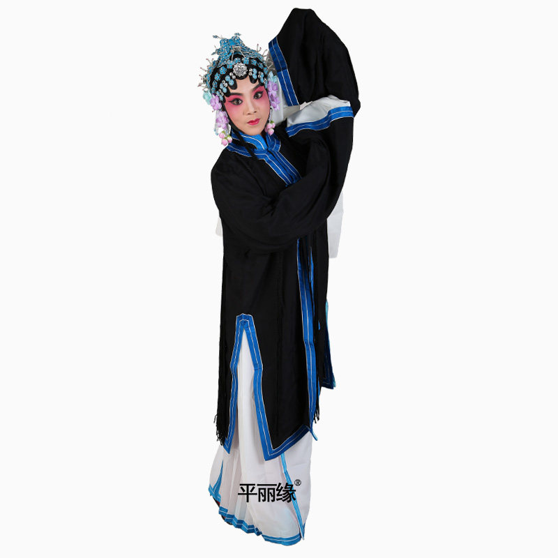 Chinese opera drama Peking opera stage costume plain Tsing Yi draped plain pleats trimmed Qin Xianglian Wang Baochuan female Huadan costume
